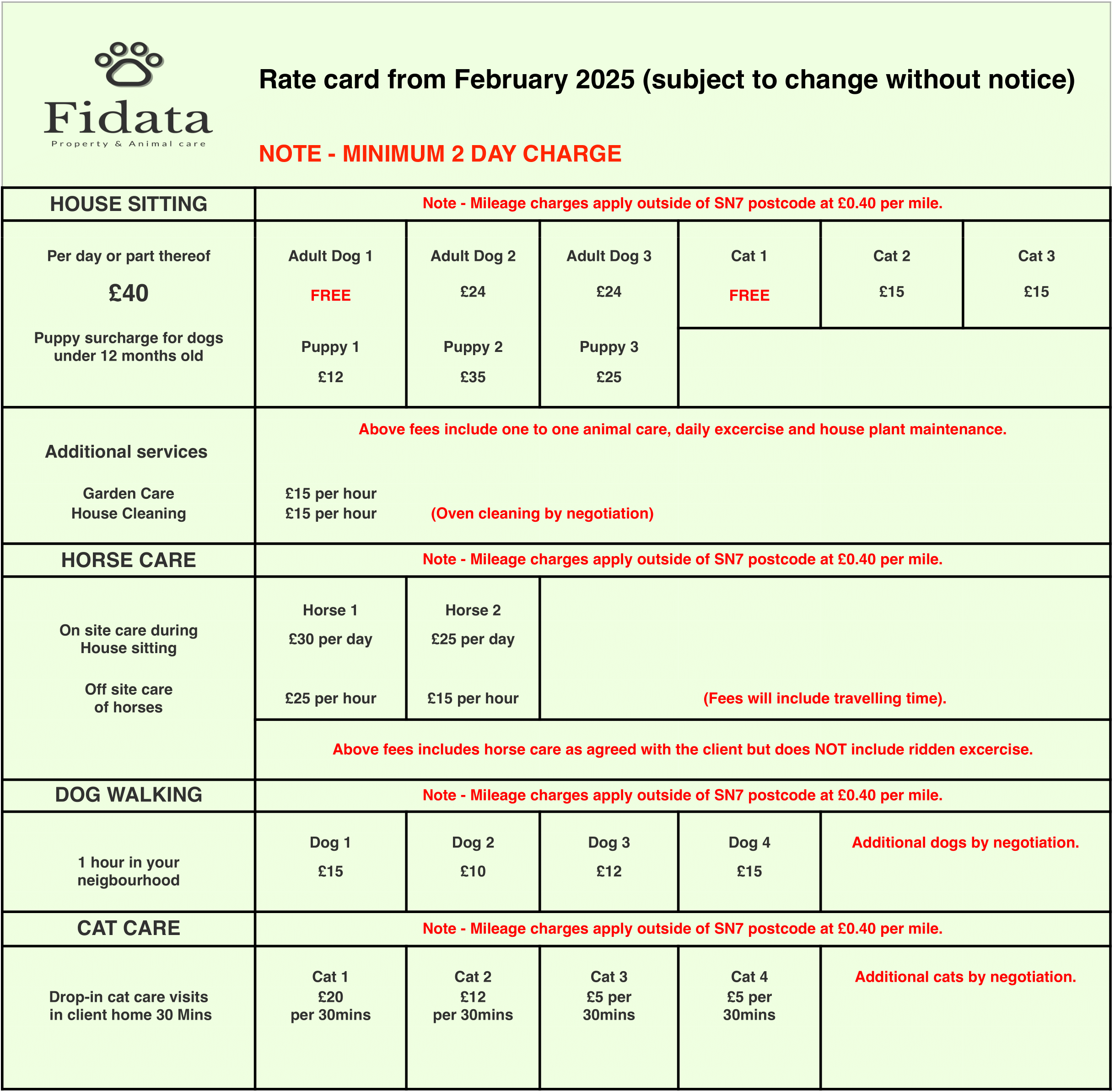 Fidata rate card 2025
